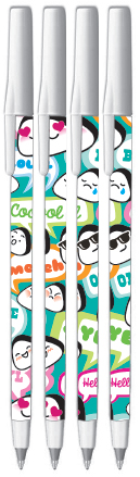 Ballpoint Pens with White Caps (Fine Point, Black Ink)